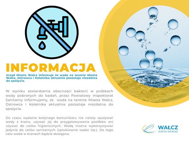 Informacja o braku przydatności wody do spożycia w Wałczu